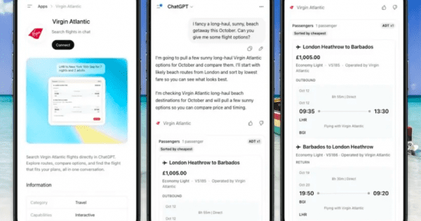 Building on Virgin Atlantic’s AI-powered Concierge, the Virgin Atlantic app in ChatGPT allows customers to search for flights using everyday language, whether they’re dreaming of a beachside escape to sun-soaked Barbados, planning a last-minute trip to the bright lights of New York, or looking to soak up the vibrant energy of Delhi.